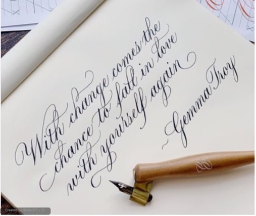 In the book, “Romance of Muskegon” they stated that the handwriting of some of her students looks like Copperplate”. Copperplate was an ornate calligraphy where upper- and lower-case letters have shading and is at a slightly different angle than Spencerian.
