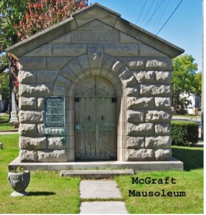 Ray (1879-1904), Newcomb (1840-1904), and Caroline (1846-1926), are entombed in the McGraft mausoleum in Evergreen Cemetery. Edith (1871-1960) is buried at Cedar Hill Cemetery in Manchester, Connecticut